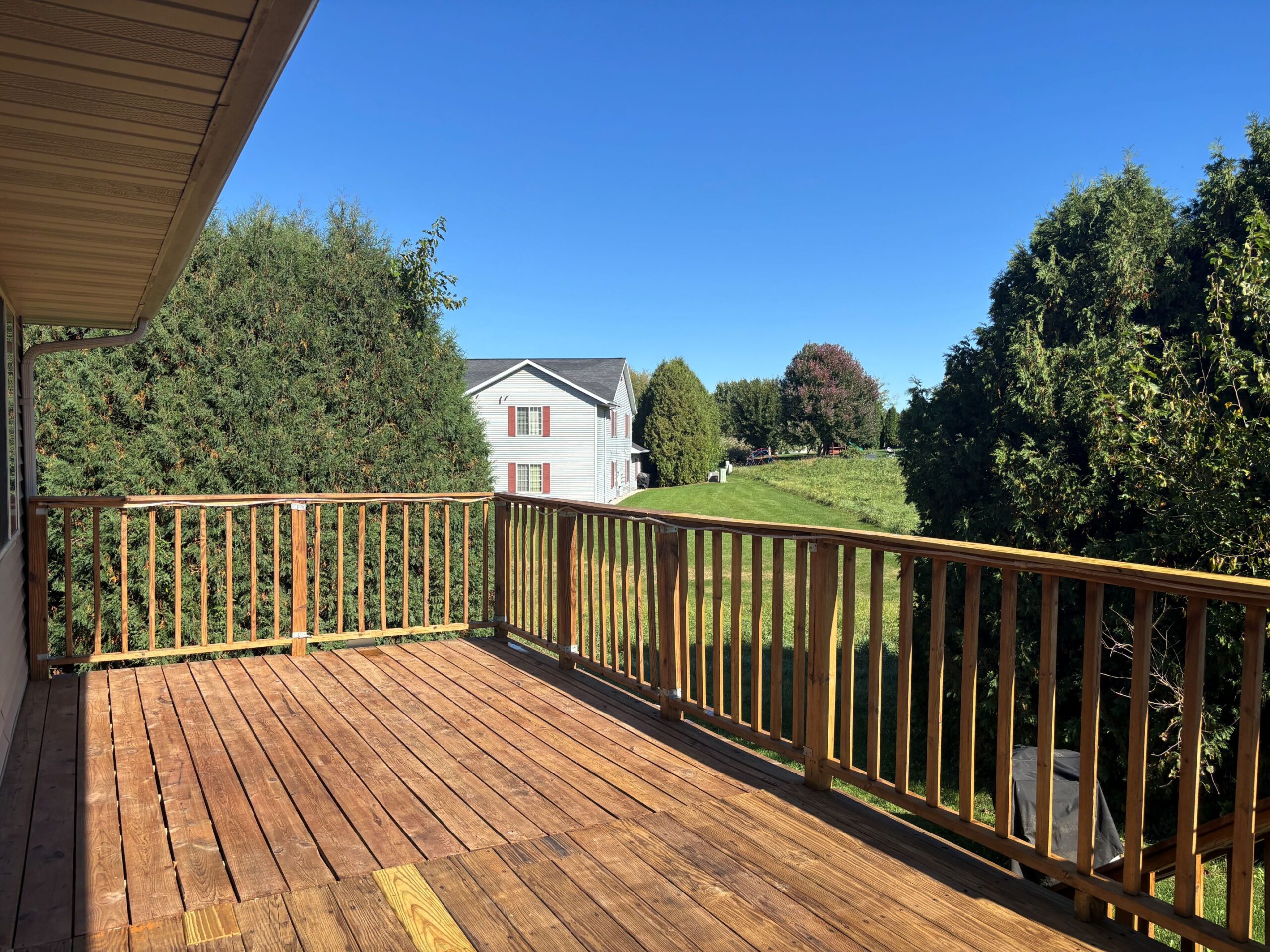 Spacious 4 bedroom 2 bathroom duplex in DeForest available December 1st or sooner! Tall, vaulted ceiling throughout kitchen, living room, and primary bedroom. New LVP flooring and paint throughout. Breakfast bar in kitchen. Finished basement with big living area and 2 bedrooms. Large deck off of living room. Washer and dryer in-unit. Just a short walk to Liberty Land Park and Deforest Area Middle & High School. 2 car garage. Tenants are responsible for all utilities, lawn maintenance, and snow and ice removal. Square footage is approximate. No smoking. Two pets allowed. 40lb limit for dogs. $35/mo per cat. $50/mo per dog.